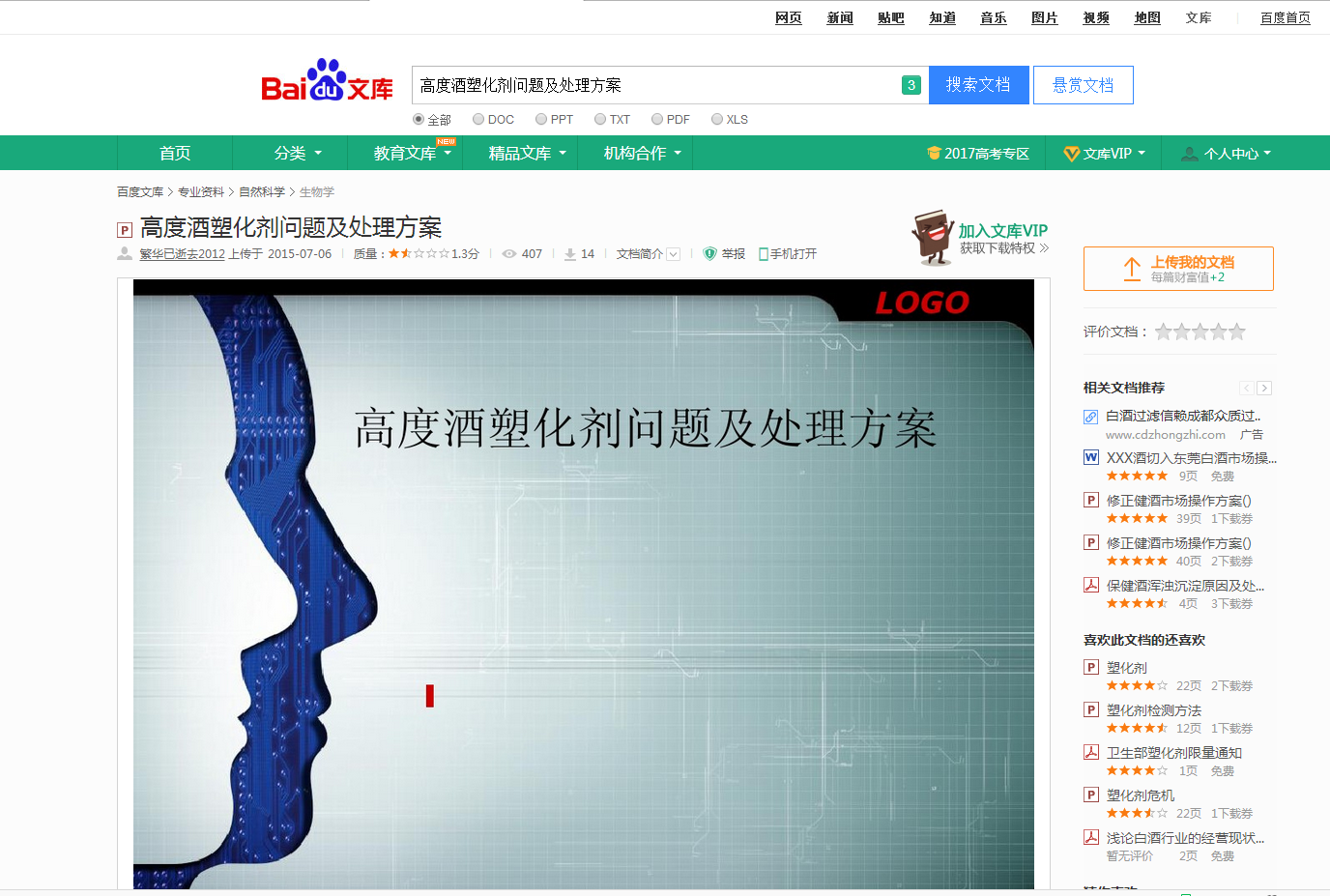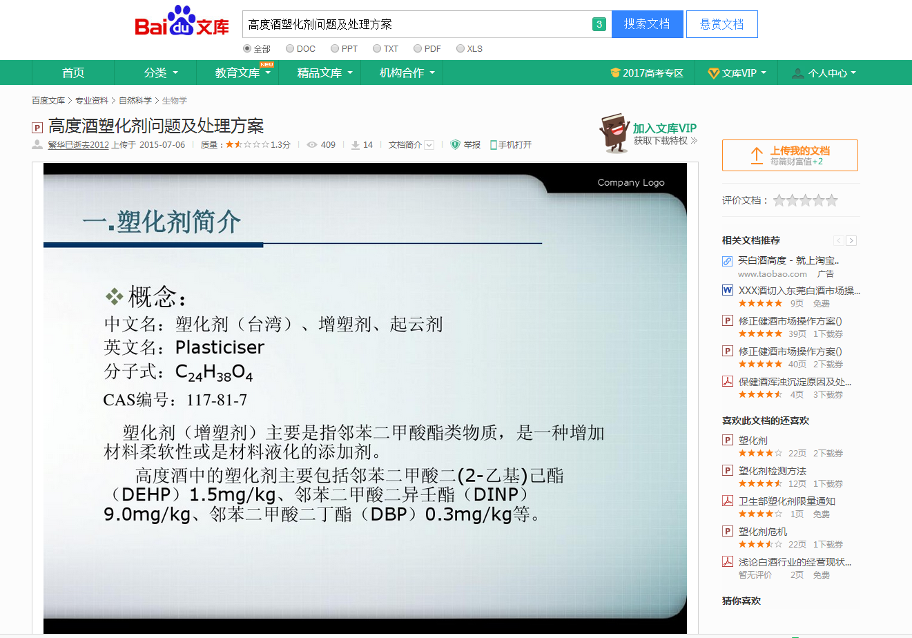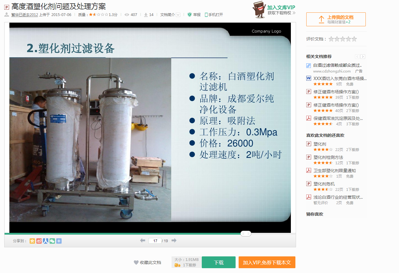 百度文庫,收錄我公司專利產(chǎn)品塑化劑過濾設(shè)備為白酒塑化劑處理的最佳解決方案